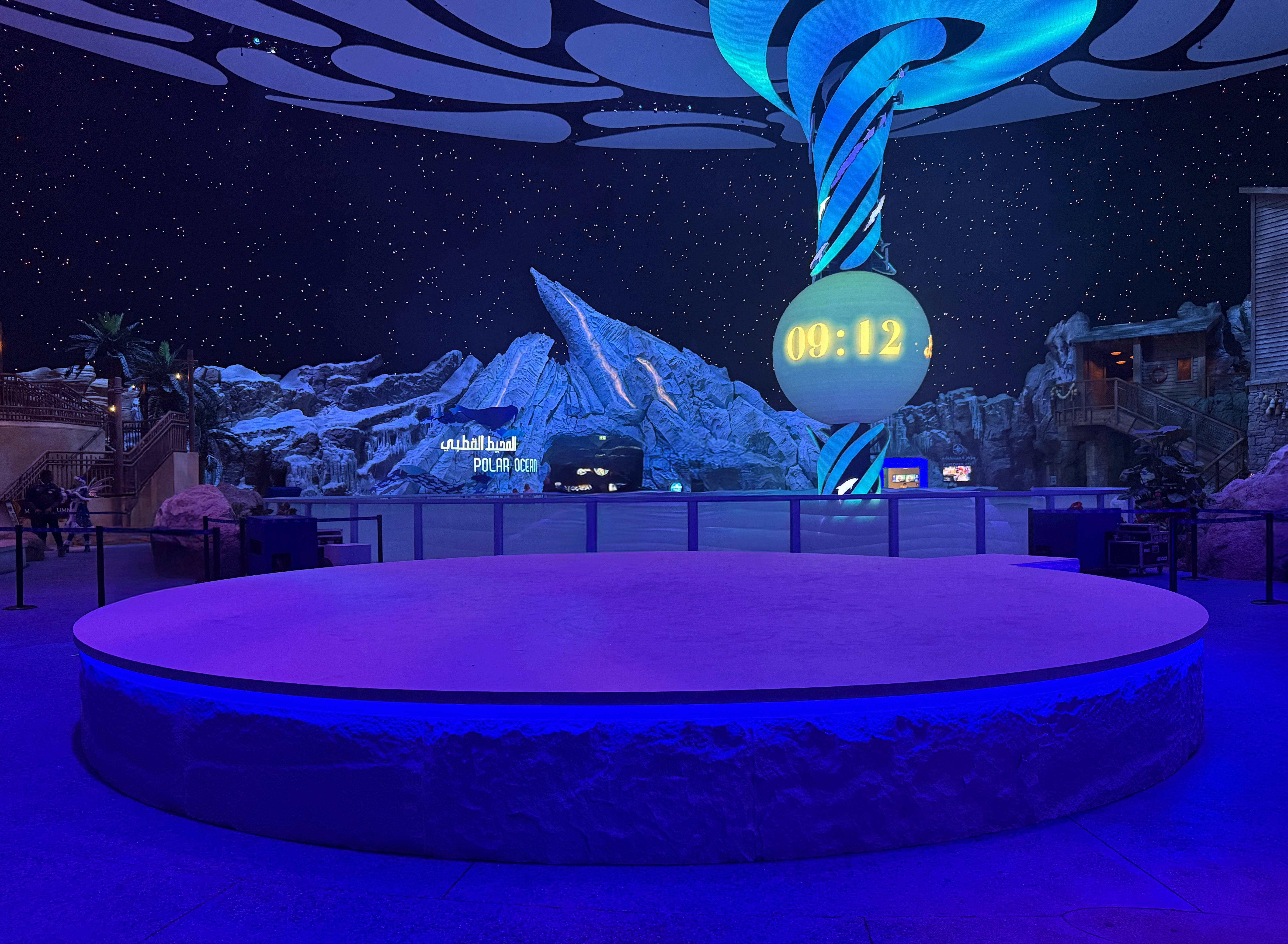 I was asked to jump in to art direct and design the stage for SeaWonder, SeaWorld Abu Dhabi’s latest entertainment offering. With the backdrop of the Polar Ocean, I wanted to call that out with an ice concept stage, and added LED lights to make it glow. The challenge for this show was the timeline and making sure that all materials are non-toxic and safe to be around the animals.