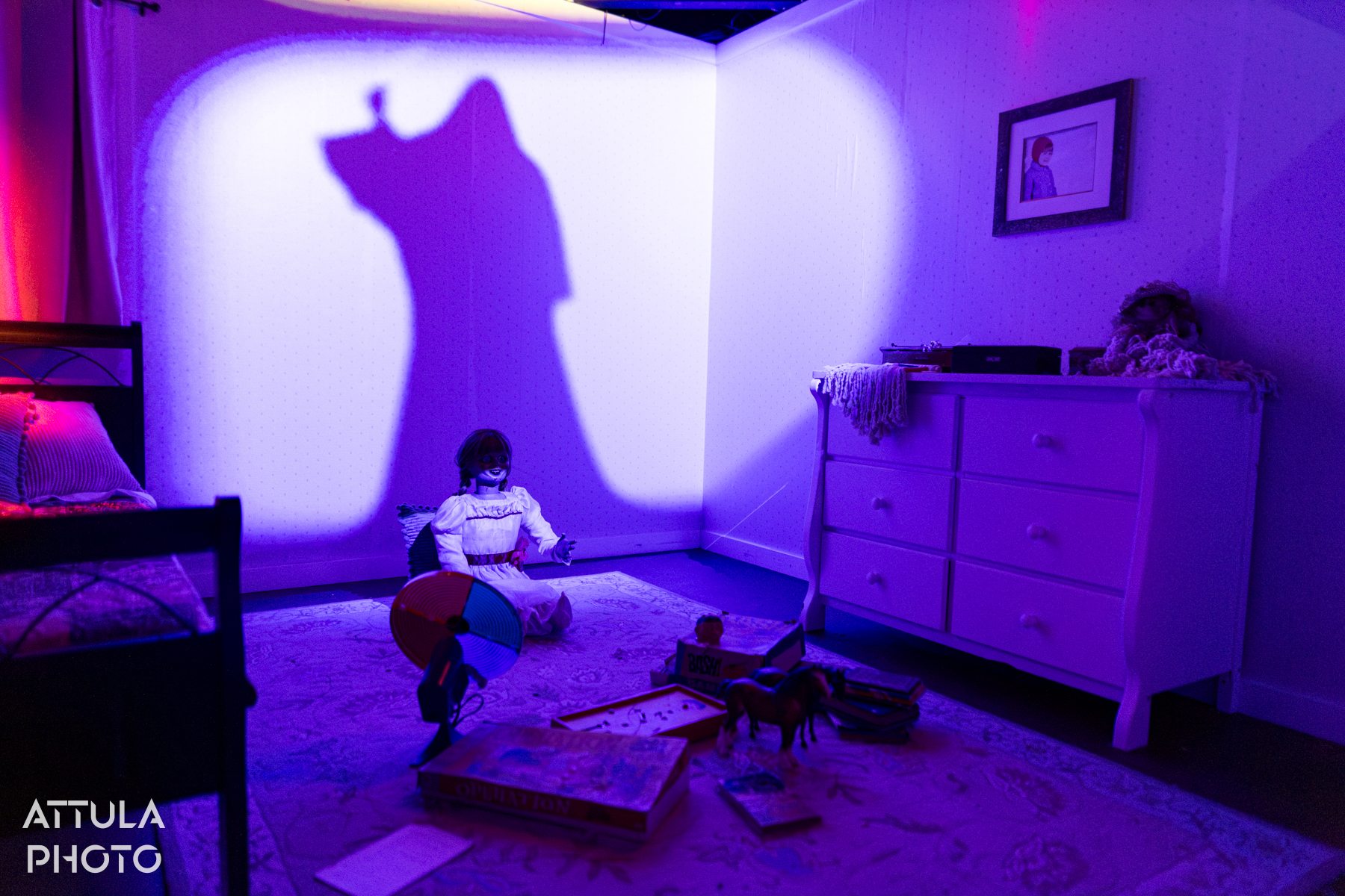 This house combined most of the Conjuring Universe films into one long terrifying journey. My favorite Easter Egg in these houses was the vintage sheet I found from Conjuring 2 that was the exact same one used in the film! (sadly not pictured)