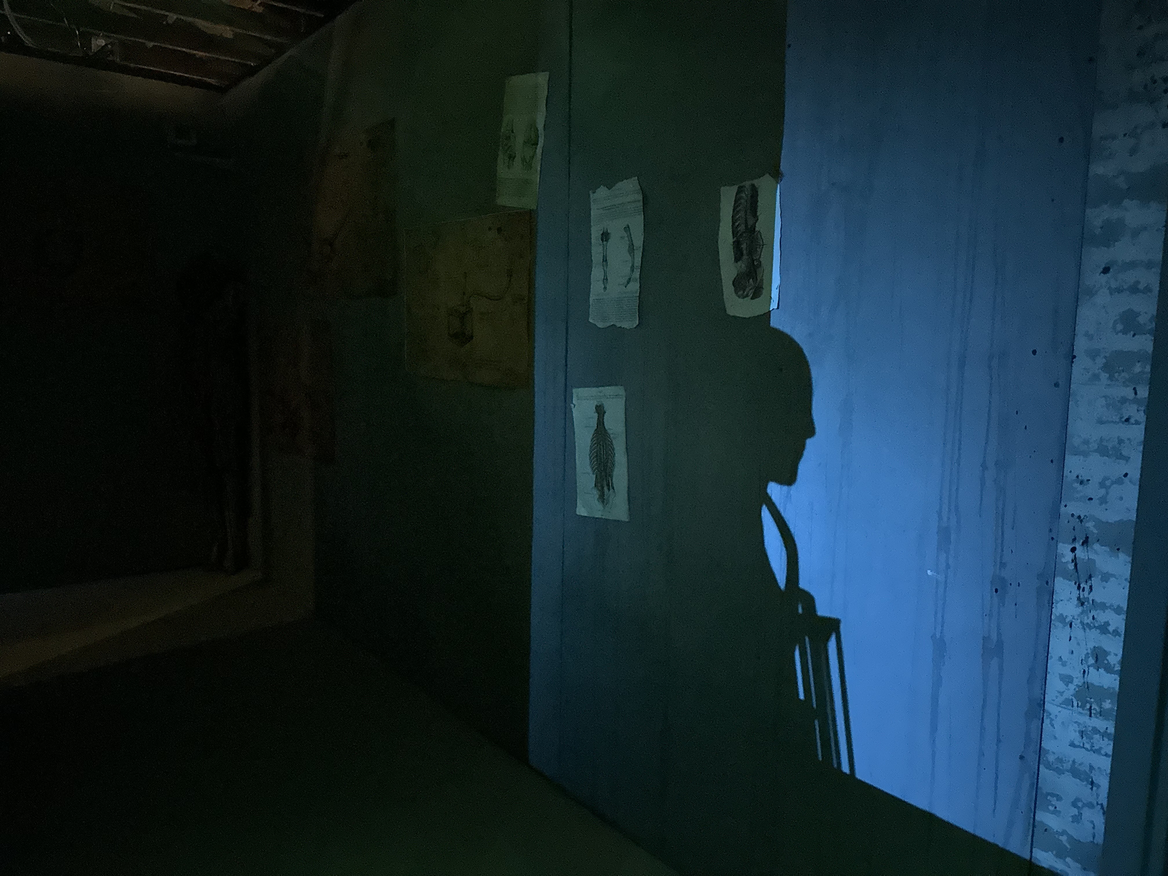 For Saw, especially in New Jersey, I was personally responsible for a lot of the scenic paint work, handwriting, and blood.